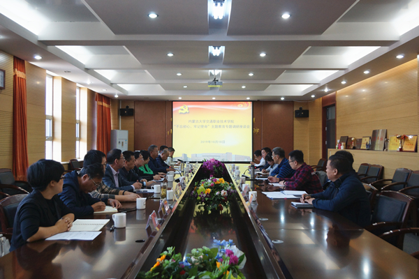 按照《內蒙古大學交通職業(yè)技術學院黨委開展“不忘初心、牢記使命”主題教育工作方案》要求,2019年10月10日下午,學院黨委書記孫智憑在交通樓A439會議室主持召開了“不忘初心、牢記使命”專題調研座談會。自治區(qū)黨委主題教育第八巡回指導組成員、內蒙古水利水電設計院組織人事處干部王宇出席座談會,學院黨政辦公室、黨委組織部、黨委宣傳部、人事與后勤保衛(wèi)處負責人,各黨總支、直屬黨支部書記參加座談。