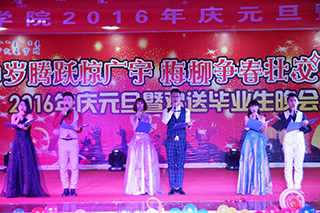 12月29日,我院2016迎新年暨歡送畢業(yè)生晚會在交通樓A453隆重舉行。本次晚會主題為“申歲騰躍驚廣宇,梅柳爭春壯交院”,由學工處(團委)指導,學生社團聯(lián)合會策劃組織。