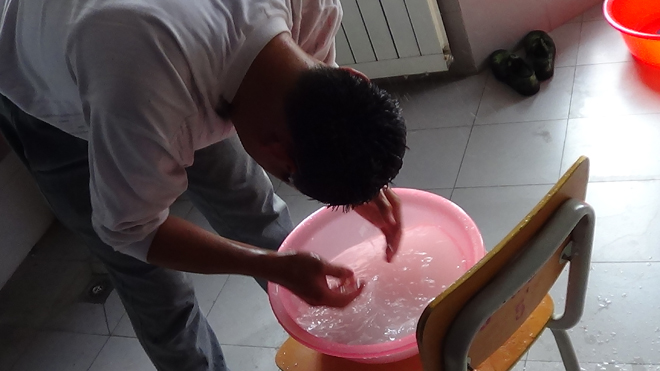一等獎(jiǎng) 作品名稱:一水多用 作品簡(jiǎn)介:現(xiàn)在水資源嚴(yán)重短缺,我們應(yīng)該學(xué)會(huì)節(jié)約用水,最實(shí)用簡(jiǎn)單的方法就是一水多用,這組照片是一個(gè)男生在宿舍的用水情況,他用一盆水洗頭,洗拖布打掃宿舍,最后才將一盆水倒掉。我們應(yīng)該向他學(xué)習(xí),學(xué)會(huì)一水多用。 土木1302班 楊蕓蕓 |
