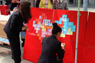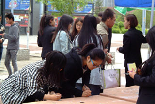 5月10日上午交通學(xué)院社團(tuán)聯(lián)合會(huì)在內(nèi)大南校區(qū)進(jìn)行了母親節(jié)感恩活動(dòng)。同學(xué)們用一束康乃馨向老師們表達(dá)敬意,用一張張貼紙寫滿了對(duì)母親的祝福;同時(shí)還為同學(xué)們提供了一個(gè)錄視頻表達(dá)感恩的平臺(tái),通過這個(gè)方式,說出想對(duì)母親說的話。雖然這個(gè)方式很簡單,但是眾多同學(xué)參與進(jìn)來,在母親節(jié)表達(dá)出他們對(duì)母親的愛和感恩。