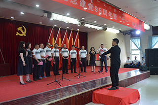 紀念暨表彰大會后,孫智憑書記和化學化工學院退休教師趙薇即興合唱了一首《長江之歌》獻禮黨的生日。各基層黨組織也向偉大的中國共產黨奉獻了精心準備的生日禮物——“愛國、愛黨、愛人民”小合唱和配樂詩朗誦。