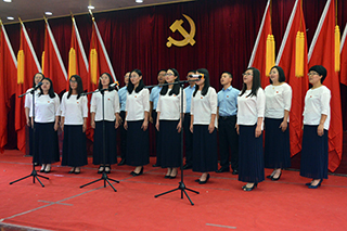 機關黨總支老師表演配樂詩朗誦《七一頌歌》